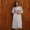 Women’s Off White Embroidered Cotton Anarkali Gown Size-L