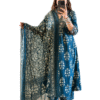 Women’s Cotton Blue Kurti with Floral Print,Anarkali 3pc set Size -XL