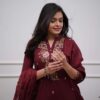 Women’s Cotton embroidery work kurta pant with mulmul dupatta set Size -XXL