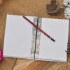 vintage handmade leather journal. Crafted with genuine leather, it radiates authenticity and charm, perfect for those who appreciate classic craftsmanship. The premium antique lock closure adds a touch of elegance and security, ensuring your thoughts and memories are safeguarded within its pages. Inside, you’ll discover 200 brown handmade pages, providing ample space for your musings, sketches, and stories to unfold. Whether it’s for journaling, sketching, or planning, this versatile journal is a timeless companion for your creative endeavors. Treat yourself or a loved one to this exquisite piece, a celebration of tradition and creativity