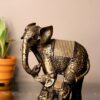 Handcrafted Antique Finish Elephant with Child Decorative Showpiece – 20 cm (Polyresin, Multicolor)