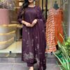 Bring traditional charm and modern elegance together with this Long Kurta featuring Discharge Floral Print and Printex, paired beautifully with matching pants and a dupatta. This set is designed for women who appreciate comfort without compromising on style. Whether you’re attending a festive occasion or a casual gathering, this set ensures you look graceful and feel comfortable all day long.