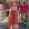 Orange Color EmbroideOrange Cotton Co-Ord Set For Women’s and Girls Size-XL