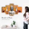 Buddha Set of Five 3D Framed Paintings for Wall Decoration – Ideal for Home, Living Room, and Bedroom (125 x 60 CM)