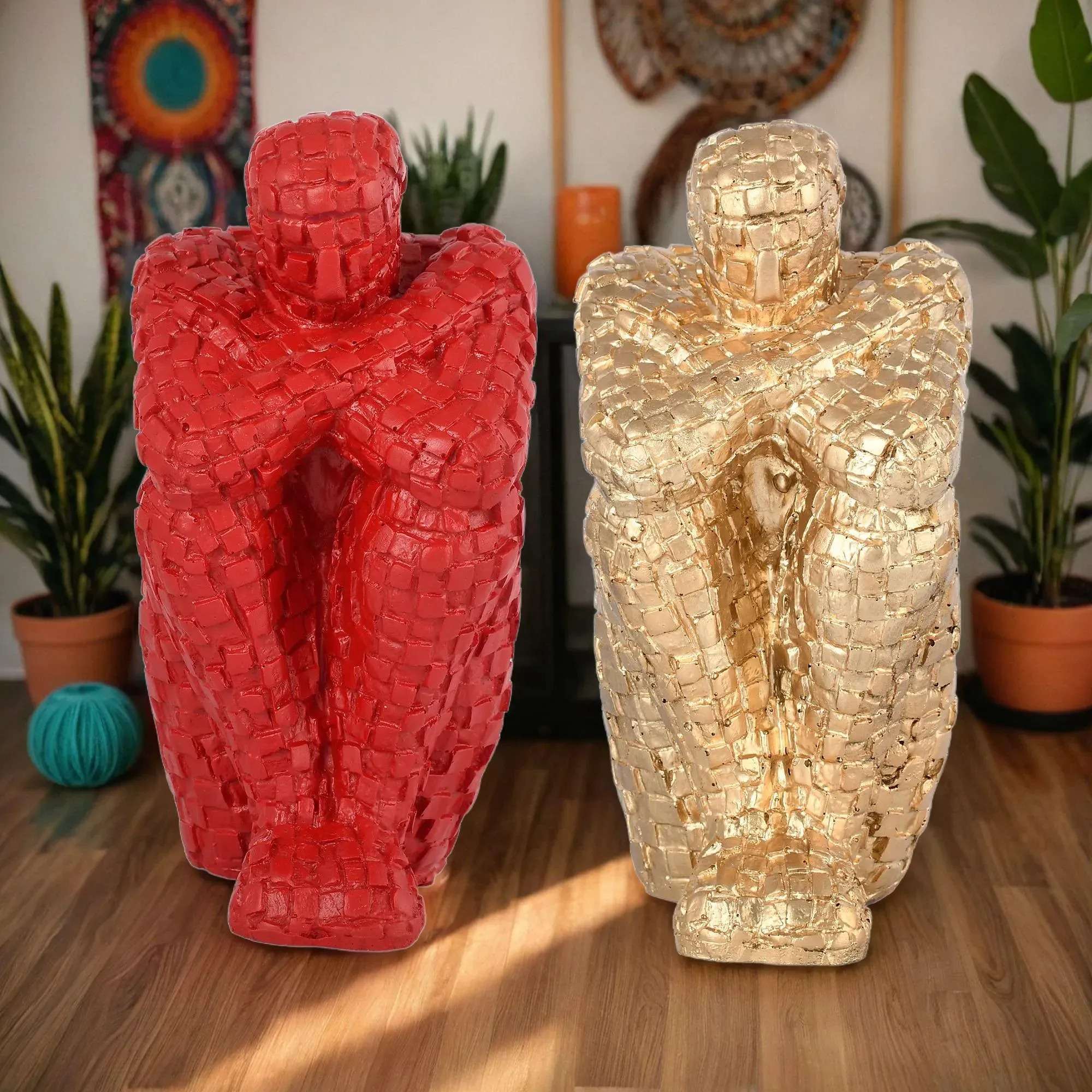 Handcrafted Thinking Mens in Sitting Position for Home Decor/Gifting/Living Room Decorative Showpiece – 20 cm (Polyresin, Red, Gold)