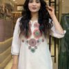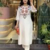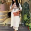 Women’s Pure Cotton Embroidery Co-Ord Set | White Floral Coo-rd Set for Women | Cotton Kurti Pants Set Size -XL