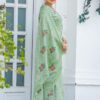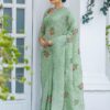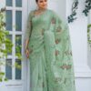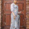 Elevate your style with this exquisite Pure Shiny Zari Chiffon Saree, featuring captivating cutwork and embroidery throughout its expanse. The saree boasts charming cross-stitch flower work meticulously spread across the fabric. It is gracefully teamed with a complementary blouse adorned with all-over buttis. This stunning and intricately detailed saree is available for βΉ4,899.00, promising a radiant and elegant look.